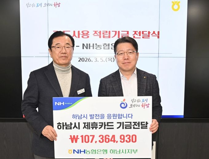 이날 전달된 적립기금은 하남시가 2025년도에 사용한 법인카드와 사회단체 보조금 카드, 공무원 복지카드 등 사용금액의 0.1~1.0% 상당을 포인트로 적립해 조성된 것이다.