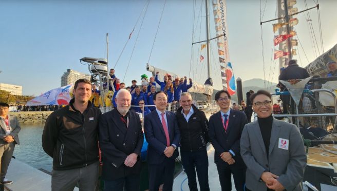 이날 통영시 도남관광지 클리퍼 계류장에서 열린 선수단 환영식에는 통영시장과 경남도 관광개발국장을 비롯한 주요 관계자들이 참석해 험난한 파도를 뚫고 도착한 선수단을 따뜻하게 맞이했다.