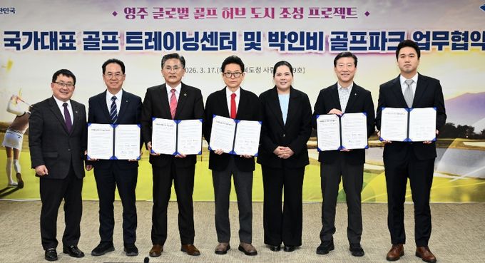 (플러스인뉴스) 경상북도는 3월 17일 경북도청에서 ‘영주 국가대표 골프 트레이닝 센터 및 박인비 골프파크 조성사업을 위한 업무협약’을 체결하고 ‘영주 글로벌 골프 허브 도시 조성 프로젝트’를 본격 가동한다.