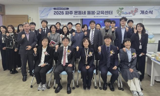(플러스인뉴스) 경기도파주교육지원청은 4월 8일, 물향기초등학교 내 파주 온동네 돌봄·교육센터 ‘함께자람’ 개소식을 개최했다. ‘함께자람’은 학교 안팎의 다양한 지역자원을 연계해 초등학생에게 정규수업 이후 돌봄·교육 통합 서비스를 제공하여 학생들이 함께 성장할 수 있도록 지원하는 지역 거점형 센터이다.
