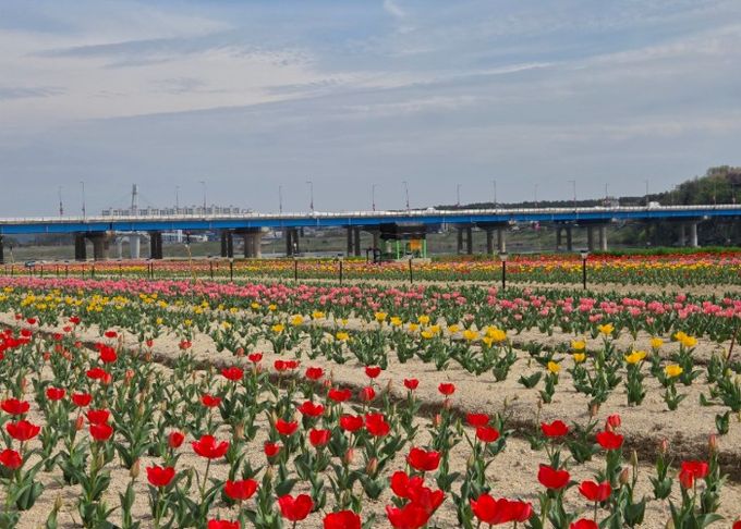 특히 남한강변을 따라 펼쳐진 탁 트인 공간에 튤립이 군락을 이루고, 인근 출렁다리까지 한눈에 조망되는 경관이 어우러지며 한층 더 아름다운 봄 풍경을 연출하고 있다. 다채로운 색감의 튤립은 강변 풍경과 조화를 이루며 방문객들에게 인상적인 볼거리를 제공하고 있다. 여기에 초록빛으로 물든 청보리까지 더해져 봄의 생동감을 한층 배가시키고 있다.