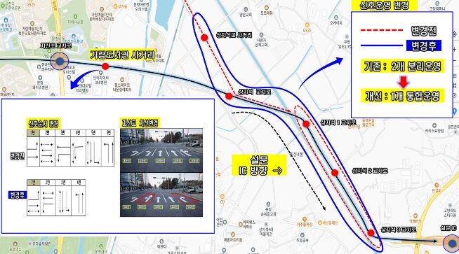해당 구간은 출퇴근 시간대 극심한 차량 정체가 발생해 시민 불편 민원이 지속적으로 제기되어 왔으며, 특히 가람도서관 사거리와 상지석 교차로 일대의 비효율적인 신호체계와 단절된 신호 연동이 주요 원인으로 지적되어 왔다.