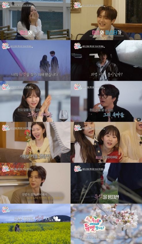이와 관련 '우리 듀엣할까요?' 제작진은 "미스와 미스터들의 귀호강 듀엣 무대는 물론, 이들 사이에 오가는 알쏭달쏭 두근두근 큐피드의 화살이 시청자 여러분들께 색다른 재미를 안겨드릴 것이다. 예고 영상에 등장하지 않은 미스와 미스터들도 있다. 과연 누구일지, 이들이 어떤 로맨틱한 듀엣 제주도 여행을 펼칠지 기대하며 지켜봐 주시기 바란다"라고 귀띔했다.