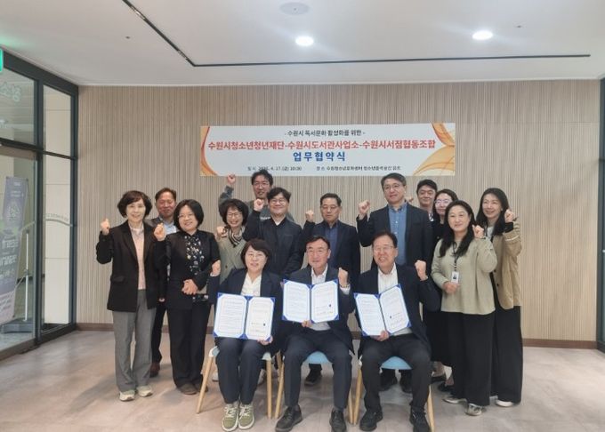 세 기관은 17일 수원청소년문화센터에서 업무협약을 체결하고 ▲독서도시 수원 조성을 위한 협력 ▲지역 독서문화 생태계 강화 ▲민관 협력 기반의 독서진흥 사업 추진 등에 협력하기로 했다.