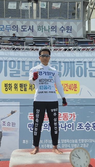 (플러스인뉴스) 양평군은 지난 19일 경기도 수원종합운동장에서 양평군 홍보대사이자 국제 환경운동가로 활동 중인 ‘맨발의 사나이’ 조승환 씨가 인간의 한계를 넘어서는 기록을 세웠다고 밝혔다.