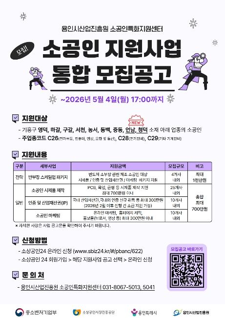 신청 대상은 용인시 기흥구 영덕동, 하갈동, 구갈동, 서천동, 농서동, 동백동, 중동, 언남동, 청덕동 내에 사업장 또는 공장을 보유한 소공인으로, 주업종 코드가 C26(전자부품), C28(전기장비), C29(기타 기계 장비)에 해당해야 한다. 특히 올해부터 언남동과 청덕동이 지원 대상에 새롭게 포함돼 지원 범위가 확대됐다.