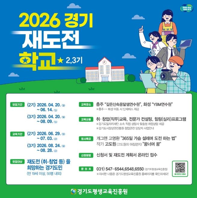 (플러스인뉴스) 경기도와 경기도평생교육진흥원은 취업이나 창업 실패를 경험한 도민의 재기를 지원하기 위해 오는 20일부터 ‘2026년 경기 재도전학교’ 2~3기 참가자를 각각 55명 내외로 모집한다.