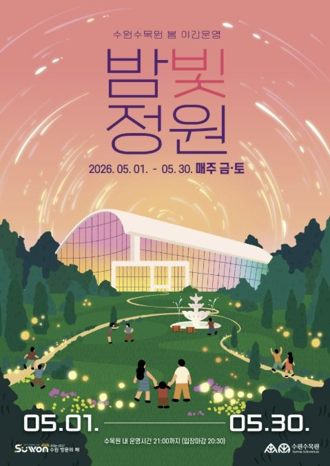 (플러스인뉴스) 수원특례시가 5월 1일부터 30일까지 매주 금·토요일 일월·영흥수목원에서 ‘2026년 수원수목원 봄 밤빛정원’을 연다.