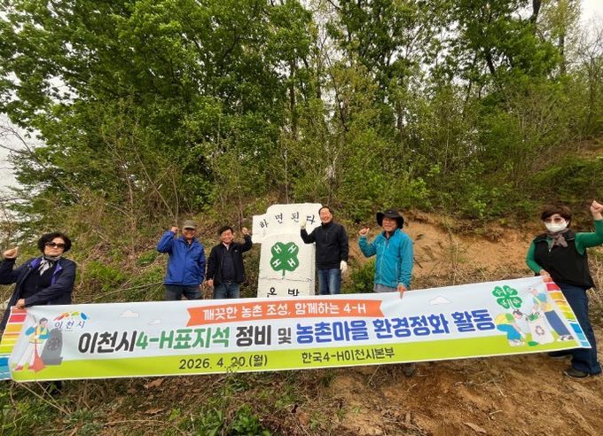 (플러스인뉴스) 한국4-H이천시본부는 지난 20일 이천시 일원에서 회원 10명이 참여한 가운데 4-H 표지석 정비와 마을 환경정화 활동을 실시했다. 이는 지역 내 4-H 표지석의 체계적인 관리와 쾌적한 마을환경 조성을 위해 추진됐다.