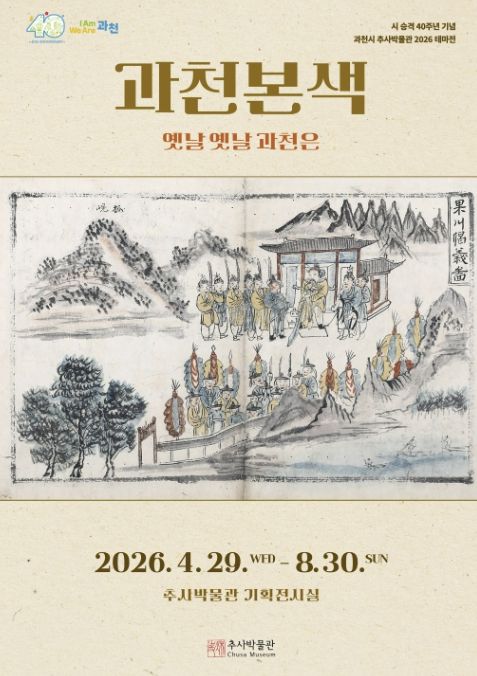 (플러스인뉴스) 과천시 추사박물관은 시 승격 40주년을 기념하여 ‘2026 테마전 '과천본색–옛날 옛날 과천은'’을 개최한다고 밝혔다. 이번 전시는 4월 29일 오후 3시 개막식을 시작으로 8월 30일까지 추사박물관 기획전시실에서 진행된다.