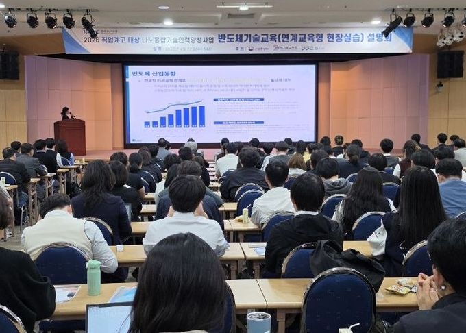 (플러스인뉴스) 경기도교육청이 22일 경기도경제과학진흥원에서 한국나노기술원과 함께 도내 직업계고 학생의 나노·반도체 분야 인재 육성을 위한 ‘2026 나노융합기술인력 양성사업 및 취업 지원’ 공동설명회를 개최했다.