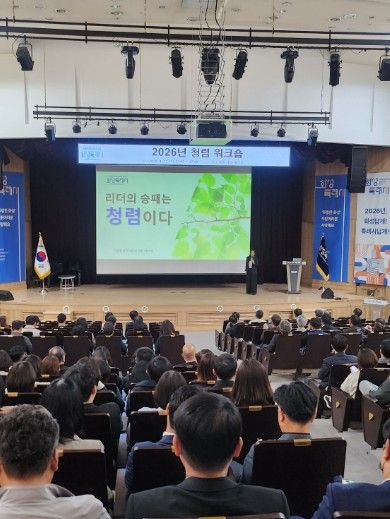 (플러스인뉴스) 화성특례시는 22일 시청 대강당에서 고위공직자를 대상으로 ‘2026년 청렴 워크숍’을 개최했다. 이번 워크숍은 조직을 이끄는 고위공직자의 청렴 리더십을 강화하고, 반부패 관련 법령에 대한 이해를 높여 공정하고 투명한 공직문화를 정착시키기 위해 마련됐다.