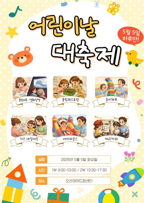 오산시는 이번 행사를 통해 어린이들에게는 즐거운 추억을 선사하고, 보호자에게는 자녀와 함께 소중한 시간을 보낼 수 있는 가족 친화형 체험의 장을 제공할 계획이다.