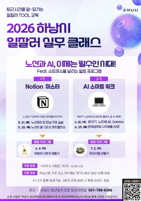 (플러스인뉴스) 하남시는 관내 청년들이 현장에서 바로 활용할 수 있는 실무 역량을 키우고 또래 청년 간 교류 기회를 확대하기 위해 오는 5월부터 ‘2026년 하남시 일잘러 실무클래스’를 운영하고 1기와 2기 참여자를 모집한다고 밝혔다.