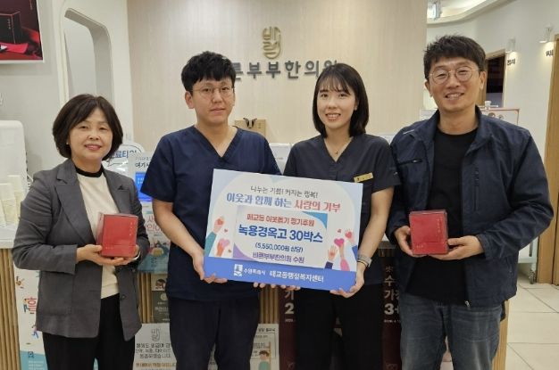 바른부부한의원은 2022년 6월 매교동에 개원한 이래 지역사회에 대한 깊은 애정으로 저소득층 노인들의 건강을 위해 2025년 4월 매교동 행정복지센터와 업무협약을 맺고 녹용경옥고를 정기적으로 기탁하고 있다. 현재까지 총 140박스(26,000천원 상당)를 지원해 취약계층 어르신들의 기력 회복과 건강 관리에 실질적인 도움을 드리고 있다.