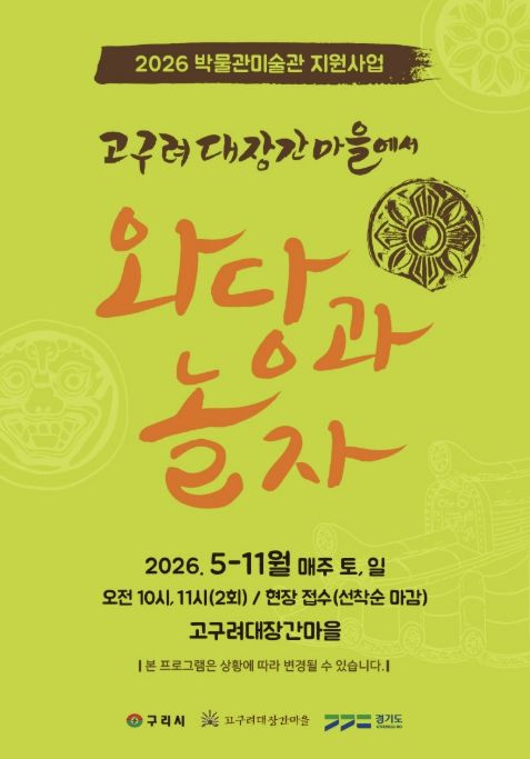 (플러스인뉴스) 구리시는 오는 5월 2일부터 11월 1일까지 매주 주말 고구려대장간마을에서 2026년 경기도 박물관·미술관 지원사업의 하나로 ‘고구려대장간마을에서 와당과 놀자’ 체험 행사를 운영한다고 밝혔다.