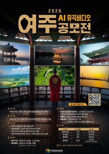 (플러스인뉴스) 여주세종문화관광재단은 여주시 관광 콘텐츠를 활용한 시민 참여형 영상 제작 프로젝트인 '2026 여주 AI 뮤직비디오 공모전'을 개최한다고 밝혔다.