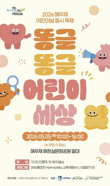 (플러스인뉴스) ‘2026 해우재 어린이날 똥시 축제-똥글똥글 어린이 세상’이 5월 5일 오전 10시부터 오후 4시까지 해우재 화장실문화공원 일원에서 열린다.