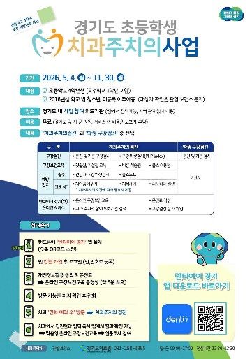 (플러스인뉴스) 평택시는 오는 5월 4일부터 11월 30일까지 관내 초등학교 4학년 학생들을 대상으로 ‘2026년 경기도 초등학생 치과주치의 사업’을 추진한다고 밝혔다.