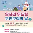 (플러스인뉴스) 수원특례시는 12월 9일 오후 3시부터 4시까지 수원시여성문화공간 휴(권선구 동수원로 224번길 10)에서 ‘12월 일자리 두드림 구인·구직의 날’ 채용 행사를 연다. 주식회사 그린씨앤씨텍, 케이티텔레캅주식회사, 주식회사티에프이, 휴먼스토리에프에스㈜, 이트너스㈜ 등 5개 업체가 참여해 전기·전자 부품·제품 조립원, 일반제품 영업원, 기계·무인 경비원, 단체급식 보조원, 일반 택배원 등을 채용한다. 채용 인원은 총 18명이다. 현장에서 구인 기업과 구직자가 1대1 채용 면접을 한다. 수원시는 취업 정보를 제공하고, 이력서·면접 클리닉을 운영하는 등 구직자들을 지원한다. 일자리를 구하는 수원시민은 누구나 참여할 수 있다. 수원일자리센터가 주관하는 ‘일자리 두드림’은 취업에 어려움을 겪는 구직자와 인재 채용을 원하는 기업을 연결해 주는 소규모 채용 행사다. 수원일자리센터는 일자리 두드림 외에도 ‘상설면접’, ‘동행면접’ 등 소규모 채용 행사로 현장 면접과 채용 상담을 동시에 진행하고 있다. 구직자의 부담을 줄이고, 기업이 적합한 인재를 신속하게 채용할 수 있도록 돕고 있다. [뉴스출