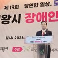 (플러스인뉴스) 의왕시는 4월 21일 국민체육센터에서 관내 장애인과 가족, 내빈 등 1,000여 명이 참석한 가운데 ‘제19회 의왕시 장애인의 날 기념행사’가 성황리에 개최됐다고 밝혔다. 희망나래장애인복지관 주관한 이날 행사는 장애인의 날을 맞아 ‘당연한 일상, 모두가 누릴 수 있도록’이라는 표어 아래, 장애인과 비장애인이 함께 소통하는 화합의 장을 마련하고 더불어 살아가는 사회 분위기 조성을 위해 추진됐다. 이날 행사는 식전 축하공연으로 △농아인협회 의왕시지회 수어공연 △퓨전 플루티스트 서가비의 공연이 펼쳐졌으며, 이어 (사)경기도 신체장애인복지회 의왕시지회 김재진, 이지나 씨의 장애인 인권헌장 낭독과 기념식, 유공자 표창 등이 진행됐다. 특히, 으뜸 장애인상에서는 ‘모범장애인 부문’에 안광례 씨, ‘장애인봉사 부문’에 황순규 씨가 각각 수상해 큰 박수를 받았다. 또한, 장애인복지 유공자 시상에서는 △박미애(농아인협회) △강경아(희망나래장애인복지관) △권희선(의왕장애아재활치료교육센터) △김희수(해온장애인보호작업장) △김수종(의왕시청 노인장애인과) △우채운(의왕시장애인주간보호시설) △오은해(희망나래