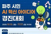 (플러스인뉴스) 파주시는 10월 13일부터 11월 17일까지 시민이 직접 참여하는 ‘파주 시민 인공지능(AI) 혁신 아이디어 경진대회’를 개최한다고 밝혔다. 이번 경진대회는 대한민국 국민 누구나 참여 가능하며, 인공지능(AI)을 활용해 행정과 시민 생활 속 다양한 문제를 해결할 수 있는 창의적 아이디어를 발굴하기 위한 시민 참여형 공모전으로, ‘인공지능(AI)과 함께하는 시민 중심의 파주, 인공지능(AI) 선도 도시’ 구현을 목표로 하고 있다. 개인 또는 팀 단위로 참가할 수 있으며, 참가자는 지정 주제(① 출판단지 활성화, ② 재해·재난 관리, ③ 동물 보호, ④ 도로 안전, ⑤ 교통 질서) 또는 자율 주제(파주시 현안 해결을 위한 생성형 인공지능(AI) 서비스 개발) 중 하나를 선택해 아이디어를 제출하면 된다. 예선은 온라인 방식으로 진행되며, 심사위원 평가 70%와 참가자 투표 30%를 합산해 상위 10개 팀이 본선에 진출한다. 본선은 현장 발표 형식으로 열리며, 창의성, 실현 가능성, 적합성, 인공지능(AI) 기술 활용성 등을 종합 평가해 최종 순위가 결정된다. 총 상금은 800만 원 규모로