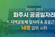 (플러스인뉴스) 파주시가 올해 상반기 지역공동체 일자리사업을 3일부터 시작했다. 최종 선발된 사업 참여자들은 이날 각자 배정된 일터로 첫 출근했다. 지역공동체 일자리사업은 실직 상태이거나 정기소득이 없는 18세 이상 파주시민을 대상으로 하며, 지역 자원을 활용하거나 현안을 반영한 일자리를 발굴해 지역공동체 형성에 보탬을 주기 위한 일자리 사업이다. 시는 이번 지역공동체 일자리사업으로 ▲청년 일자리사업 ▲주말농장 환경 정비 ▲촘촘보조교사 등 3개 사업을 추진하여 11명을 선발했으며, 시급한 현안에 대응하기 위해 추가로 선발한 공공근로사업 참여자 3명까지 총 14명을 선발했다. 이번 참여자들은 이달 3일부터 6월 24일까지 약 4개월간 근무하게 된다. 이이구 민생경제과장은 “공공근로사업이 단순한 재정 지원 일자리를 넘어 안정적인 일자리를 찾아가기 위한 마중물이 될 수 있도록 노력해 나가겠다”라고 말했다. 한편 시는 이달 중순경 '2026년도 2단계 공공근로사업’참여자를 모집할 예정이며, 자세한 사항은 파주시청 누리집을 참고하면 된다. [뉴스출처 : 경기도 파주시]