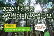 (플러스인뉴스) 경기도가 광릉숲 생물권보전지역 활성화를 위해 2026년 광릉숲 주민참여지원사업 참여자를 모집한다. 광릉숲 생물권보전지역 주민참여지원사업은 의정부시, 남양주시, 포천시 내에서 활동하고 있는 5인 이상의 주민공동체, 비영리법인 등을 지원하는 지역 활성화 사업이다. 사업비는 지정 사업은 500만 원에서 최대 2,000만 원까지, 자율사업은 500만 원에서 최대 1,000만 원까지 사업별 차등 지원한다. 지정사업은 광릉숲 생물권보전지역 핵심·완충구역 및 인접지역의 경로당, 마을회관 등 현판 교체 사업이며, 자율사업은 광릉숲의 가치인식 증진사업, 주민참여 활성화 사업, 지역 활성화 사업 등이다. 사업 참여 희망 단체는 2월 27일까지 사업계획서를 포함한 신청 서류를 제출해야 한다. 제출 방법은 전자우편으로 한글 서류 제출 후 우편 및 방문해 원본을 제출하면 된다. 접수처는 경기도 광릉숲 BR관리센터(포천시 소흘읍 광릉수목원로 509)이다. 주민참여지원사업 및 설명회에 관한 자세한 사항은 경기도 광릉숲 생물권보전지역 관리센터로 문의하거나 광릉숲 생물권보전지역 누리집 등을 통해 확인할 수 있다.