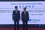 (플러스인뉴스) 경기주택도시공사(GH)는 3일 GH 수원 본사 9층 역량개발센터에서 한국수자원공사(K-water)와 함께 ‘광명시흥 도시첨단산업단지 수열에너지 집단공급 시범사업’ 추진을 위한 실시협약을 체결했다고 밝혔다. 이 자리에는 양 기관 관계자 약 30명이 참석했다. 이번 사업은 GH가 조성 중인 광명시흥 도시첨단산업단지에 수열에너지를 공급하기 위한 국내 최초의 산업단지 단위 수열에너지 적용 사례로, 산업단지 조성 단계부터 수열 공급관로를 선제적으로 설치해 향후 입주기업의 냉난방 에너지원으로 활용할 수 있도록 한 것이 특징이다. 수열에너지는 수온이 여름철에는 대기보다 낮고 겨울철에는 높은 물리적 특성을 이용해 냉난방에 활용되는 고효율·친환경 에너지로, 기존 중앙 냉난방 장치(흡수식 냉온수기) 대비 약 35%의 에너지 절감 효과가 있다. 또한 냉각탑이나 실외기 설치가 필요 없어 공간 효율성과 건물 미관도 동시에 확보된다. 협약에 따라 양 기관은 에어컨 약 3,000대를 대체할 수 있는 3,000RT(냉동톤) 규모의 수열에너지를 안정적으로 공급할 수 있는 전용 공급관로를 설치하고, 향후 20년간