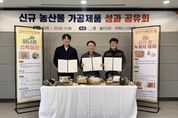 (플러스인뉴스) 시흥시 농업기술센터는 지난 1월 30일 센터 내에서 지역 농산물을 활용한 ‘신규 농가공제품 개발 성과공유회 및 기술이전 업무협약식’을 열었다. 이번 행사는 지난 2025년 3월부터 12월까지 약 10개월간 시흥시 농업기술과와 지역 농가가 협력해 추진한 농산물 가공 제품 연구개발 성과를 공유하고, 개발 기술의 현장 적용 과 실용화를 촉진하기 위해 마련됐다. 이번에 개발된 제품은 총 2종이다. ▲‘감자누룽지과자’는 시흥 친환경 감자와 쌀, 연근을 최적의 비율로 배합해 바삭한 식감과 고소한 풍미를 극대화했다. ▲‘미나리스틱젤리’는 시흥 미나리를 추출해 영양성분을 가득 담아내면서도 과일 향을 더해 대중적인 입맛과 간편하게 섭취할 수 있도록 만든 제품이다. 두 제품 모두 지역 특산물의 영양을 유지하면서도 현대인의 입맛과 유행을 반영해 상품성을 높였다는 평가를 받았다. 시는 이날 업무 협약을 통해 연구 개발된 핵심 기술을 해당 농가에 이전하고, 오는 4월까지 제품 브랜드 및 포장재 개발, 주문자 상표 부착 생산(OEM) 업체 선정을 마무리할 계획이다. 이후 6월부터는 본격적인 제품 생산과 온오프라인 유통