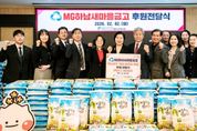 (플러스인뉴스) 지난 2일, MG하남새마을금고는 설 명절을 맞아 ‘사랑의 좀도리 운동’의 일환으로 백미 200포 총 2,000kg을 하남시미사강변종합사회복지관에 전달하며 지역사회 내 취약계층 이웃을 위한 따뜻한 나눔을 실천했다. ‘사랑의 좀도리 운동’은 쌀을 한 숟가락씩 덜어 모아 어려운 이웃을 돕는 전통적인 나눔 활동으로, MG하남새마을금고는 오랜 기간 이 운동을 통해 지역사회 취약계층을 위한 나눔을 지속적으로 이어오고 있다. 이번에 전달된 백미 200포는 설 명절을 앞두고 생계 부담이 큰 취약계층 가정에 전달되어 따뜻한 명절을 보내는 데 도움을 줄 예정이다. 이날 전달식에는 MG하남새마을금고 이점복 이사장 및 임직원을 비롯하여 하남시민생안정후원회 한상영 회장, 하남시미사강변종합사회복지관 조혜연 관장, 하남시니어클럽 양우식 관장, LH행복꿈터 지역아동센터 김길임 센터장, 다함께돌봄센터 김고운 센터장이 함께 자리를 빛내주었다. MG하남새마을금고는 매년 백미 지원뿐만 아니라 냉방기기 지원, 김장김치 지원, 생활용품 후원, 지역사회 상생 활동 등 다양한 사회공헌 활동을 통해 지역사회와 함께 성장하는 금융기관으로서의