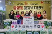 (플러스인뉴스) 오산시 중앙동 행정복지센터는 지난 5일 운천중학교 학부모회로부터 설 명절을 맞아 지역 내 저소득 어르신을 위한 생필품 20세트를 후원받았다고 밝혔다. 이번 후원은 설 명절을 홀로 보내거나 경제적 어려움을 겪고 있는 독거 어르신들에게 실질적인 도움을 전하고자 마련됐다. 후원 물품은 샴푸, 휴지, 치약·칫솔, 비누 등 일상생활에 꼭 필요한 생필품으로 구성됐으며, 관내 독거 어르신 20가구에 전달될 예정이다. 정유선 운천중학교 학부모회장은 “명절을 앞두고 홀로 지내시는 어르신들께서 이웃의 따뜻한 정을 느끼시길 바라는 마음으로 회원들과 뜻을 모았다”며 “작은 정성이지만 어르신들께서 건강하고 따뜻한 설 명절을 보내시는 데 도움이 되길 바란다”고 전했다. 백경희 중앙동장은 “지역사회를 위해 이웃사랑을 실천해 주신 운천중학교 학부모회에 깊이 감사드린다”며 “기탁해 주신 물품은 정성 어린 마음을 담아 도움이 필요한 어르신들께 소중히 전달하겠다”고 밝혔다. [뉴스출처 : 경기도 오산시]