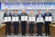 (플러스인뉴스) 수원특례시가 경기창조경제혁신센터, 4개 대학과 협력해 대학의 기술창업을 발굴하고, 지원한다. 수원시와 경기창조경제혁신센터, 4개 대학은 30일 시청 상황실에서 ‘창업도시 수원 기술창업 혁신 관·학 업무협약’을 체결하고, 협력을 약속했다. 협약 기관들은 대학의 우수한 연구 성과, 인적 자원을 보유한 우수 기술창업기업을 발굴하고, 기술의 사업화를 촉진하기 위해 협력하기로 했다. 수원시는 수원기업새빛펀드의 수원기업 의무투자 약정액으로 투자를 유치하고, 경기창조경제혁신센터는 기업에 멘토링, 엑셀러레이팅(스타트업이 빠르게 성장하도록 지원), 밋업(투자자 유치 행사), 아이알(IR)데이, 투자 등을 지원한다. 대학교는 실험실 창업·창업 보육기업을 추천한다. 이날 협약을 바탕으로 대학창업 특화 프로그램인 ‘새빛 유-테크(U-Tech).판’을 시작한다. 경기창조경제혁신센터의 엑셀러레이팅 인프라를 활용해 우수한 기술력과 성장 잠재력을 갖춘 창업기업을 발굴하고, 기업의 투자 유치 역량을 극대화하는 프로그램이다. 3대 핵심 목표는 ‘인프라 적극 활용’, ‘선순환 구조 구축’, ‘실질적 투자 집행’이다.