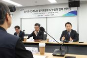 (플러스인뉴스) 경기도와 민주노총 경기도본부가 5일 경기도청에서 노정 간 신뢰를 바탕으로 한 협력 선언을 했다. 이날 행사에는 고영인 경기도 경제부지사를 비롯해 김도형 경기도 노동국장, 김진희 민주노총 경기도본부장 등이 참석했다. 양측은 지난 1월 노정협의 상견례를 통해 첫 공식 만남을 가진 바 있다. 이번 협력 선언을 통해 경기도와 민노총 경기도본부는 ▲공공부문 노동권 보장 및 확대 ▲노동가치를 우선으로 한 행정 구현 ▲연 2회(상․하반기) 경기도-민노총 경기도본부 간 정례회의 추진 ▲경기도 정책의 공공성 강화 및 폭넓은 대화 창구 구축을 약속했다. 경기도는 노정협의 요구안의 정책 반영 논의를 위해 3월 중 관계부서 실무회의를 열 계획이다. 고영인 경제부지사는 “노동 존중 사회로 나아가는 실질적인 변화를 위해 경기도와 민노총이 협조 체계를 구축하고 지속적인 소통과 협력을 이어나갈 것”이라고 말했다. [뉴스출처 : 경기도]