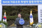 (플러스인뉴스) 이상일 용인특례시장은 6일 처인구 양지면 대대리 ‘자유수호희생자위령탑’에서 열린 제45회 자유수호희생자 합동위령제에 참석해 희생자들을 추모했다. 이날 행사엔 이상일 시장을 비롯한 박창무 한국자유총연맹 용인시지회장 등 지역 내 단체 관계자와 시민 50여 명이 참석했다. 행사는 희생자를 기리기 위한 추도 의식, 추념사·추도사, 조가 연주와 제창, 진혼무, 헌화 순으로 진행됐다. 이상일 시장은 추도사에서 “고대부터 자유는 인간에게 가장 중요한 가치로 자유를 얻지 못하면 우리는 평등해질 수가 없다”며 “선배 세대들이 목숨을 바치면서 자유를 지켜낸 모습만 봐도 자유는 그냥 얻어진 것이 아니다”라고 강조했다. 이 시장은 “우리가 매년 위령제를 지내는 것은 1990년 9월 21일 희생당하신 분들의 고귀한 넋을 우리가 면면히 잘 이어받아 선배 세대가 소중하게 지킨 이 나라를 더욱더 발전시켜 후배 세대들에게 물려주기 위함이라고 생각한다”며 “호국영령의 넋이 하늘나라에서도 늘 평안을 누리시길 기원드린다”고 했다. 자유수호희생자위령탑은 1950년 9월 21일 용인·화성·수원 등지에서 끌려와 양지면 대대