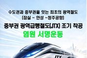 (플러스인뉴스) 안성시는 3월 6일부터 6월 30일까지 수도권과 중부권 최대 현안 사업인 ‘중부권 광역급행철도 사업’의 조속 추진을 위해 범국민 서명운동을 전개한다고 밝혔다. 중부권 광역급행철도는 서울 잠실~성남~광주~용인~안성~진천~청주국제공항을 연결하는 연장 134㎞, 총사업비 약 9조 원이 투입되는 사업이다. 현재 한국개발연구원(KDI)에서 민자 적격성조사가 진행 중이며, 오는 하반기에 완료할 예정이다. 민자 적격성조사가 통과될 경우, 다음 단계인 제3자 제안공고 및 협상, 사업시행자 지정, 실시계획 승인 고시가 이루어지며, 2030년 하반기에 착공 예정이다. 서명운동과 관련하여 시는 안성시 선거관리위원회의 사전 검토를 거쳤으며, 온라인 및 오프라인 방식으로 병행 추진한다. 서명운동 추진에 따라 작성된 서명부는 국토교통부와 한국개발연구원(KDI)에 전달하여 민자 적격성조사 등에 정책성 확보 자료로 활용될 예정이다. 안성시는 시민 참여를 확대하기 위해 시청 및 기관, 각 읍·면·동의 행정복지센터, 행사장 등에 서명부를 비치하고, 시민의 적극적인 참여를 독려할 예정이다.