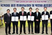 (플러스인뉴스) 경상북도는 3월 17일 경북도청에서 ‘영주 국가대표 골프 트레이닝 센터 및 박인비 골프파크 조성사업을 위한 업무협약’을 체결하고 ‘영주 글로벌 골프 허브 도시 조성 프로젝트’를 본격 가동한다. 이날 협약식에는 이철우 경상북도지사를 비롯해 박성만 경상북도의장, 엄태현 영주부시장, 장상진 와우매니지먼트 대표, 프로골퍼 박인비, 김택수 대한체육회 진천선수촌장 등이 참석했다. ◈ 국가대표 트레이닝 센터와 국제대회 가능 27홀 대중제 골프장 단지 추진 이번 사업은 총사업비 1,500억 원이 투입되어 영주시 장수면 두전리 일원 43만평 부지에 국가대표 트레이닝 센터와 27홀의 대중제 골프장을 건립한다. 43만평의 부지에는 골프 인재 육성의 요람이 될 ▲국가대표·유소년 골프 트레이닝 센터 및 ▲스포츠 과학 지원시설, ▲국제대회가 가능한 27홀 규모의 대중제 골프장, ▲박인비 프로의 상징성을 담은 박인비 골프 박물관과 전문 아카데미가 건립되어 연간 약 50만 명 이상의 관광객 방문이 예상된다. 아울러, ▲400실 규모의 호텔 등 체류형 숙박시설과 ▲지역 특산물 판매시설, ▲캠핑장, ▲놀이시설 등