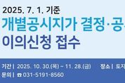 (플러스인뉴스) 수원시 영통구는 2025년 7월 1일 기준 개별공시지가를 10월 30일 결정·공시하고, 11월 28일까지 이의신청 기간을 운영한다. 이번에 결정·공시되는 대상은 올해 1월 1일부터 6월 30일까지의 토지 분할, 합병, 지목변경 등 변동 사항이 있는 58필지이다. 결정·공시되는 개별공시지가는 토지소재지 구청 토지관리과 및 인터넷 부동산공시가격알리미에서 확인할 수 있으며, 개별공시지가에 이의가 있는 토지소유자나 이해관계인은 이의신청서를 토지소재지 구청 토지관리과에 방문 또는 우편 제출하거나 인터넷을 통하여 신청할 수 있다. 이의신청 토지는 감정평가사의 검증을 거쳐 부동산가격공시위원회의 심의 후 이의신청인에게 처리결과를 통지하고 조정된 개별공시지가는 12월 22일 공시될 예정이다. [뉴스출처 : 경기도 수원시]