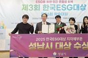 (플러스인뉴스) 성남시는 ‘제3회 한국 이에스지(ESG) 대상’ 시상식에서 지방자치단체 이에스지(ESG) 부문 대상을 받았다고 11일 밝혔다. 한국 이에스지(ESG) 대상은 사단법인 한국ESG학회가 환경(Environmental), 사회(Social), 투명경영(Governance) 분야에서 탁월한 성과를 거둔 지자체 등 공공기관과 기업, 학교, 개인 등에게 주는 상이다. 성남시는 앞선 9월 ‘이에스지(ESG) 특별시 성남’ 비전을 선포한 이후 ‘환경과 사회’, ‘사회와 투명경영’ 등 분야 간 연계 효율을 높이는 융합형 이에스지(ESG) 접근법을 제시해 높은 평가를 받았다. 해당 사업으로 △기후테크 중소기업 육성(환경) △모든 시민 무료 독감 예방접종 지원(사회) △이에스지(ESG) 시민대학 프로그램 운영(투명경영) △맨발 황톳길 11곳 운영(환경+사회) △이에스지(ESG) 환경 분야 상생 협업 추진(환경+투명경영) △나눔 명예의 전당 운영(사회+투명경영) 등이 꼽힌다. 시 관계자는 “이번 수상은 성남시만의 이에스지(ESG) 특화사업을 추진하기 위해 모든 공직자가 함께 노력해 온 결과”라면서 “앞으