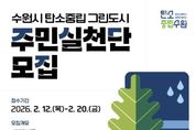 (플러스인뉴스) 수원특례시가 ‘생활 속 탄소중립 실천’을 확산하기 위해 2월 12일부터 20일까지 탄소중립 그린도시 사업 대상지 주민·생활권자를 대상으로 ‘수원시 탄소중립 그린도시 주민실천단’ 신규 참여자를 모집한다. 주민실천단은 탄소중립 그린도시 사업 대상지 주민과 생활권자로 구성된 시민 참여 조직이다. 지역 내 탄소중립 실천 활동과 홍보, 주민 참여 활동 등을 한다. 특히 수원시는 올해 주민실천단을 70명 규모로 확대 운영할 계획이다. 지난해 운영 성과를 바탕으로 신규 참여자를 모집해 참여 기반을 넓히고, 일회성 캠페인을 넘어 생활 속 실천이 자연스럽게 이어지는 탄소중립 문화를 확산할 계획이다. 모집 대상은 고색동·오목천동·탑동·서둔동·호매실동·평동·평리동 일부 등 탄소중립 그린도시 사업 대상지 거주민과 해당 지역 생활권자다. 주민실천단은 자원봉사 형태로 활동하며 ▲생활 속 탄소 저감 실천 ▲지역 맞춤형 실천 활동 ▲탄소중립 실천 홍보 ▲분과 활동, 회의 ▲역량 강화 교육 등에 참여한다. 수원시는 탄소중립 그린도시 주민실천단 확대 운영에 맞춰 참여자 역량을 높이는 교육과 분과별 실천