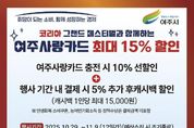 (플러스인뉴스) 여주시는 ‘2025 코리아 그랜드 페스티벌’ 기간인 오는 10월 29일부터 11월 9일까지 ‘여주사랑카드 최대 15% 할인’ 행사를 한다고 밝혔다. 여주사랑카드 사용자는 충전 시 10% 선할인(인센티브 충전)을 받을 수 있으며, 행사기간 내 결제 시 추가로 5% 후캐시백 지원을 받을 수 있다. 5% 캐시백 행사는 예산 소진시까지 1인 최대15,000원까지 혜택을 받을 수 있도록 지원하며, 지원 내역은 모바일 경기지역화폐 앱에서 실시간으로 확인할 수 있다고 안내했다. (5% 캐시백 행사에 민생회복 소비쿠폰, 농어민기회소득 등 정책수당은 결제 금액에 포함되지 않는다.) 코리아 그랜드 페스티벌은 내수 활성화를 위해 중소벤처기업부, 산업통상자원부 등 정부가 주관하는 소비 축제로 10개 부처와 3만개 유통사가 참여하며, 지역사랑상품권과 디지털온누리상품권 추가 할인, 상생소비복권, 카드사 캐시백 이벤트 등을 진행한다. 여주시 일자리경제과 관계자는 “이번 행사를 통해 지역 내 소비 진작, 지역 소상공인들의 매출 증대에 도움이 되기를 바란다”라며, “시민분들의 많은 관심과 참여를 바란다”고 말했다. [뉴스