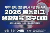 (플러스인뉴스) 충북 영동군 생활체육 축구의 중심 ‘영동리그’가 2026년, 한층 젊고 역동적인 변화와 함께 새롭게 출발한다. 영동군축구협회(회장 김영민)는 오는 8일 저녁 7시, 영동군민운동장에서 '제31회 2026 영동리그 생활체육축구대회' 개막경기를 시작으로 8월까지 약 4개월간의 리그 일정에 돌입한다고 밝혔다. 이번 리그는 매주 수요일 개최되며 ▲영친회 ▲성우회 ▲하나회 ▲태산FC ▲움직여 ▲영동군청FC ▲우체국FC 등 총 7개 팀이 참가해 풀리그 방식으로 치열한 경쟁을 펼칠 예정이다. 특히 이번 리그는 지난 3월 일라이트 골프앤리조트의 전폭적인 후원으로 성황리에 마친 ‘전국 유소년 축구 스토브리그’의 열기를 이어받아 더욱 기대를 모으고 있다. 유소년 대회 유치를 통해 지역 경제 활성화에 기여했던 성공 사례를 바탕으로, 이번 영동리그 역시 지역 기업과 상생하는 스포츠 마케팅의 핵심 모델로 추진된다. ‘골 1만 원의 가치’… 축구로 실현하는 따뜻한 나눔 올해 리그의 가장 큰 변화는 ‘골 1개당 1만 원 적립 기부제’의 도입이다. 경기 중 기록되는 모든 득