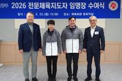 (플러스인뉴스) 광주광역시체육회가 23일 15시 체육회관 중회의실에서 ‘2026 전문체육지도자 임명장 수여식’을 개최했다고 밝혔다. 수여식에는 전갑수 체육회장, 김영삼 사무처장, 전문체육지도자 등 관계자 50여명이 참석한 가운데 제107회 전국체육대회 등을 앞두고 훈련 지도에 전념하고 있는 지도자들을 임명하고 격려했다. 시 체육회는 육상, 복싱, 펜싱 등 27개 종목에 29명의 전문체육지도자들을 배치하여 지역 선수들의 경기력 향상과 체계적 선수 육성을 통한 지역 체육 경쟁력 강화를 도모한다. 모든 지도자는'국민체육진흥법'에 따른 전문체육지도자 자격을 갖춘 지도자로서 공공성과 전문성을 확보하여 선수 지도, 대회 참가 등 전문체육 전반을 담당한다. 이날 행사에서 지도자들은 올해 대표선수 경기력 향상 및 제107회 전국체전 상위 입상을 위해 최선을 다할 것을 다짐했다. 지난해 개최된 제106회 전국체전에서 광주선수단이 획득한 총 32,626점 가운데 시 체육회 소속 전문체육지도자들이 지도한 선수들이 6,824점을 획득하며 21%를 차지하는 성과를 거둔 바 있다. 시 체육회는 어려운 여건 속에