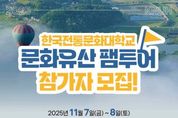 (플러스인뉴스) 국가유산청 한국전통문화대학교는 11월 7일부터 8일까지 대학 캠퍼스(충남 부여군)와 부여군 일대에서 전국 고등학생과 학부모를 대상으로 전통문화와 문화유산의 가치를 직접 체험할 수 있는 '2025 한국전통문화대학교 문화유산 팸투어'를 운영한다. 이번 행사는 전통문화 교육의 산실인 한국전통문화대학교 곳곳을 소개하고, 전통문화와 문화유산에 대한 이해와 공감대를 형성하기 위해 마련됐다. 첫날인 11월 7일에는 대학입학 설명회와 함께 캠퍼스 탐방 등이 진행되며, 둘째 날인 8일에는 부여의 자연경관을 조망할 수 있는 열기구 체험, 천연기념물 '부여 가림성 느티나무'(성흥산 사랑나무), 사적 '부여 궁남지' 등 부여군 일대의 국가유산 탐방, 학예사와 함께 하는 국립부여박물관 전시 관람 등의 프로그램이 운영된다. 참가 대상은 전국 고등학교 1·2학년 학생과 학부모 총 10팀(20명)이며, 신청은 11월 2일까지 한국전통문화대학교 누리집 또는 공식 인스타그램의 참가자 모집 신청 주소를 통해 가능하다. 진로를 탐색하는 학생들이 학부모와 함께 한국전통문화대학교의 미래 비전과 학교생활을 미리 경험해보며,
