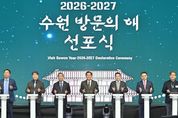 (플러스인뉴스) 이재준 수원특례시장이 24일 수원컨벤션센터에서 열린 ‘2026-2027 수원 방문의 해’ 선포식에서 “수원의 문을 세계로 활짝 열겠다”고 말했다. 이재준 시장은 기념사에서 “수원 방문의 해는 수원의 가치를 세계와 나누겠다는 가슴 벅찬 선언”이라며 “수원은 케이(K)-콘텐츠를 선도하고, 한국 방문 관광객 2000만 명 시대를 견인할 역량이 충분한 도시”라고 밝혔다. 이어 “수원은 세계가 주목하는 ‘글로벌 문화관광 도시’가 될 수 있다”며 “희망찬 여정에 시민 모두가 도시의 주인이라는 마음으로 함께해 주시길 바란다”고 말했다. 이날 선포식은 수원 방문의 해 로고 기수단 입장으로 시작됐다. 이재준 수원시장과 산하기관·관광업계·시민단체 대표 30명이 기수로 참여했다. 수원시는 수원화성 축성 230주년(2026년), 수원화성 유네스코 세계문화유산 지정 30주년(2027년)을 맞아 수원 방문의 해를 선포했다. 슬로건은 ‘수원, 당신을 위한 관광도시(Suwon For You)’다. 연간 1500만 명이 찾는 글로벌 관광도시를 발돋움하는 것을 목표로 설정했다. 수원 방문의 해 5대 추