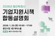 (플러스인뉴스) 용인특례시는 오는 20일 오후 3시 시청 에이스홀에서 ‘2026년 중소기업 지원시책 합동설명회’를 개최한다고 9일 밝혔다. 이번 설명회는 자금‧수출‧연구개발 등 다양한 중소기업 지원 정책 정보를 안내하고, 기업들이 이를 효율적으로 이용할 수 있도록 하고자 마련됐다. 시는 용인시산업진흥원과 금융지원, 기업환경 개선, 해외판로 개척, 기술지원 등 올해 지원사업 내용을 설명한다. 중소벤처기업진흥공단, 기술보증기금, 경기신용보증재단, 소상공인시장진흥공단 등 4개 기관은 기업 운용에 도움이 되는 자금과 금융 지원책을 소개한다. 경기도경제과학진흥원, 경기테크노파크, 경기지방중소벤처기업청 등 3개 기관은 해외시장 판로 개척, 연구개발(R&D) 지원사업 등을 설명한다. 설명회 후엔 이들 기관과 별도 부스에서 기업인과 맞춤형 상담도 할 예정이다. 참여를 원하면 오는 20일까지 시 홈페이지나 용인기업지원시스템을 통해 신청하면 된다. 당일 현장 신청도 가능하다. 자세한 사항은 용인기업지원시스템 용인시소식을 참고하거나 용인시 기업지원과로 문의하면 된다. 이상일 시장은