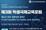(플러스인뉴스) 경기도교육청국제교육원이 22일 국내외 학생을 대상으로 ‘제3회 학생국제교육포럼’을 개최한다. 지난 2024년부터 시작된 ‘학생국제교육포럼’은 경기도 내 고등학교와 국제교류활동을 하고 있는 해외학교가 함께 참여하는 교류의 장(場)으로 올해는 한국 학생 44명과 일본·뉴질랜드·미국·베트남·필리핀·대만 등 해외 학생 33명이 참여한다. 올해 ‘학생국제교육포럼’의 주제는 ‘평등을 넘어, 형평성과 정의로(From Equality to Equity and Justice)’로 참가자들은 교육․디지털․건강․경제․문화와 인종 형평성 등에 대한 문제해결 가능성을 탐색한다. 포럼은 연세대 최영준 교수의 기조강연과 소주제별 활동 발표 및 강연자와의 토론으로 이어진다. 진행 방식은 실시간 쌍방향 원격프로그램을 통해 영어로 진행되며 유튜브를 통해 실시간 생중계된다. 박숙열 경기도교육청국제교육원장은 "이번 포럼은 국제교류활동을 하는 학교 간 소통과 네트워크 확대를 지원하고, 참가 학생들의 협력적 문제해결에 중점을 두었다”며 “앞으로도 다양한 문화적 배경의 학생들과 글로벌 문제에 대한 공감대를 형성
