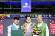 (플러스인뉴스) 울주군청 해뜨미씨름단 소속 노범수 선수가 5일 울산 울주군 울주종합체육센터에서 열린 ‘위더스제약 2025 울주추석장사씨름대회’에서 태백장사에 등극했다. 노범수는 이날 5판 3선승제로 펼쳐진 태백장사(80㎏ 이하) 결정전에서 허선행(수원특례시청)을 꺾고 우승을 차지하며 개인 통산 24번째(태백장사 20회, 금강장사 4회) 황소트로피를 들어올렸다. 시드 배정으로 8강에 오른 노범수는 이은수(영암군민속씨름단)를 만나 들배지기되치기와 왼배지기로 이겼다. 이어 4강에서 만난 문준석(수원특례시청)을 잡채기와 들배지기로 제압하며 무패로 결승에 진출했다. 결승 상대는 개인통산 7번째 태백장사에 도전하는 강력한 우승후보인 허선행(수원특례시청)으로 두 선수의 팽팽한 접전이 예상됐다. 첫 번째 판 허선행이 잡채기를 시도해 노범수가 이를 뒤집기로 반격했으나 그 과정에서 허선행의 목이 꺾이는 부상으로 기권하며, 경기는 노범수의 승리로 마무리됐다. 이로써 노범수는 홈그라운드에서 열린 대회에서 우승을 차지하며, 올 시즌 2번째 장사(25 유성대회, 25 추석대회)에 올랐다. 한편 울산 울주군은 지