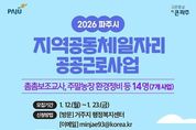 (플러스인뉴스) 파주시가 오는 23일까지 2026년 상반기 지역공동체 일자리 및 공공근로사업 참여자 14명을 모집한다고 밝혔다. 지역공동체 일자리와 공공근로사업은 취업 취약계층에게 공공일자리를 제공해 최소한의 생계를 보장하고 재취업을 위한 도전의 발판을 마련하기 위한 일자리 지원 사업이다. 지역공동체 일자리사업은 ▲주말농장 환경 정비 ▲촘촘보조교사 ▲마을정원 조성 및 유지관리 등 4개 분야에서 총 11명을, 공공근로사업은 ▲청소년 활동 프로그램 보조 ▲초등 생존수영 프로그램 업무 지원 ▲어린이보호구역 폐쇄회로텔레비전(CCTV) 집중 관제 등 3개 분야에서 총 3명을 각각 모집한다. 선발자들은 3월 3일부터 6월 26일까지 약 4개월간 주 5일 근무하게 되며, 4대 보험 가입과 함께 주휴수당 및 연차수당이 지급된다. 지역공동체 일자리사업의 시간당 임금은 1만 320원이며, 근무일마다 부대비 5천 원이 별도로 지급된다. 공공근로사업의 시간당 임금은 1만 2,070원이다. 참여 자격은 ▲사업개시일 기준 18세 이상 ▲재산 4억 원 이하를 만족하고, 가구소득은 기준중위소득을 기준으로 지역공동체 일자리사업은