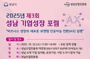 (플러스인뉴스) 성남산업진흥원은 오는 10월 22일 11시 30분부터 ‘인공지능 전환 실행 전략’을 주제로 2025년 제3회 ‘성남기업성장포럼’을 개최한다. 이번 포럼은 성남시 중소기업의 성공적인 ‘인공지능 전환(AI Transformation)’을 실질적으로 지원하기 위해 마련됐다. ‘성남기업성장포럼’은 매회 성남시 중소기업이 직면한 경영환경 변화 이슈를 주제로 선정하여 개최되고 있다. 올해는 제1회 ‘기후테그 비즈니스 새로운 성공전략’, 제2회 ‘세계교질서 변화와 맞춤형 경영전략’ 등 두 차례 개최됐고, 14개 유관기관과 300여명의 기업인이 참여했다. 포럼 참가는 성남시 소재 기업인이면 누구나 가능하고, 성남산업진흥원 홈페이지를 통해 참가 신청을 할 수 있으며 행사 당일 현장 등록도 가능하다. 포럼에서는 한국산업기술진흥원 곽용원 첨단산업공급망단 단장이 정부의 ‘인공지능 전환’ 지원정책과 지원사업을 소개하고, 최재식 ㈜인이지 대표이사(카이스트 교수, 국가인공지능전략위원)가 ‘인공지능 전환’을 통한 비즈니스 혁신 사례와 구체적인 실행 전략을 제시할 예정이다. 본행사에 앞서 열리는 ‘지원사업 미니설